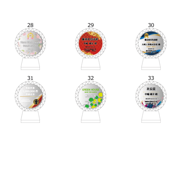 営業表彰にエリーズ(カラー)クリスタルトロフィー。ダイヤカットの豪華さと、底面のホログラム加工が反射してキレイな輝きを放つ高級感あるトロフィーです。特殊印刷でオーダーメイドに仕上げます。
